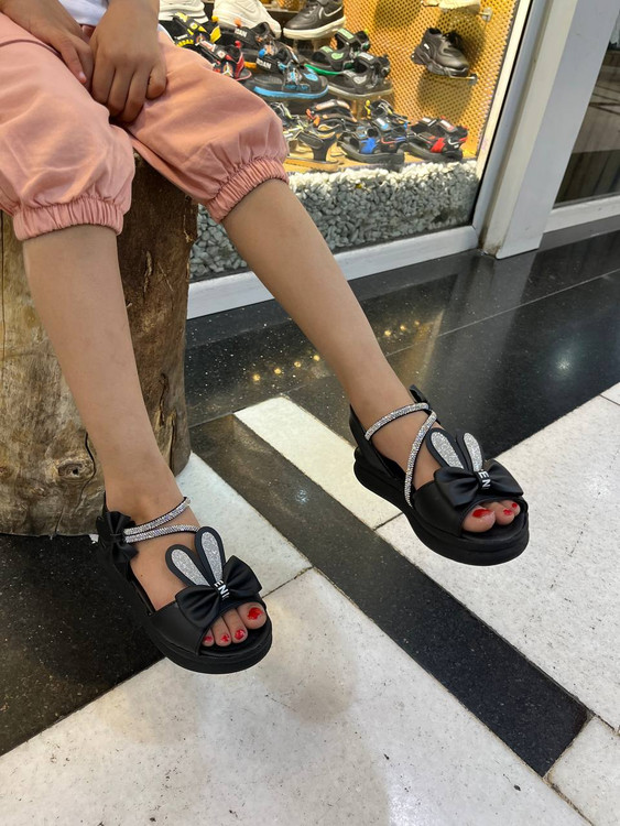 کفش صندل دخترانه مناسب روزمره، مهمانی و تابستانی مدل خرگوشی نگینی